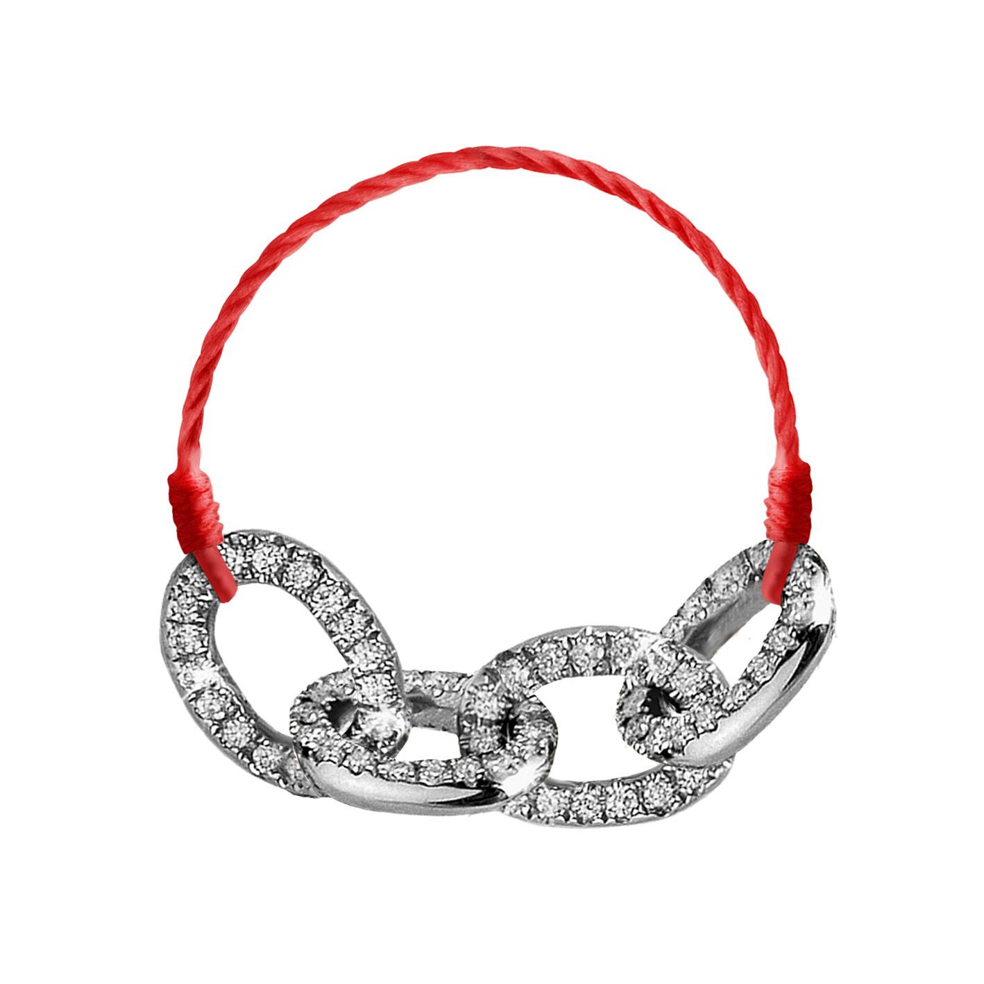 Le sacre du diamant! Quatre maillons pavés de diamants (0,18 carat) ornent cette précieuse bague en fil. Elle est disponible en quatre couleurs d'or et 80 couleurs de fils.