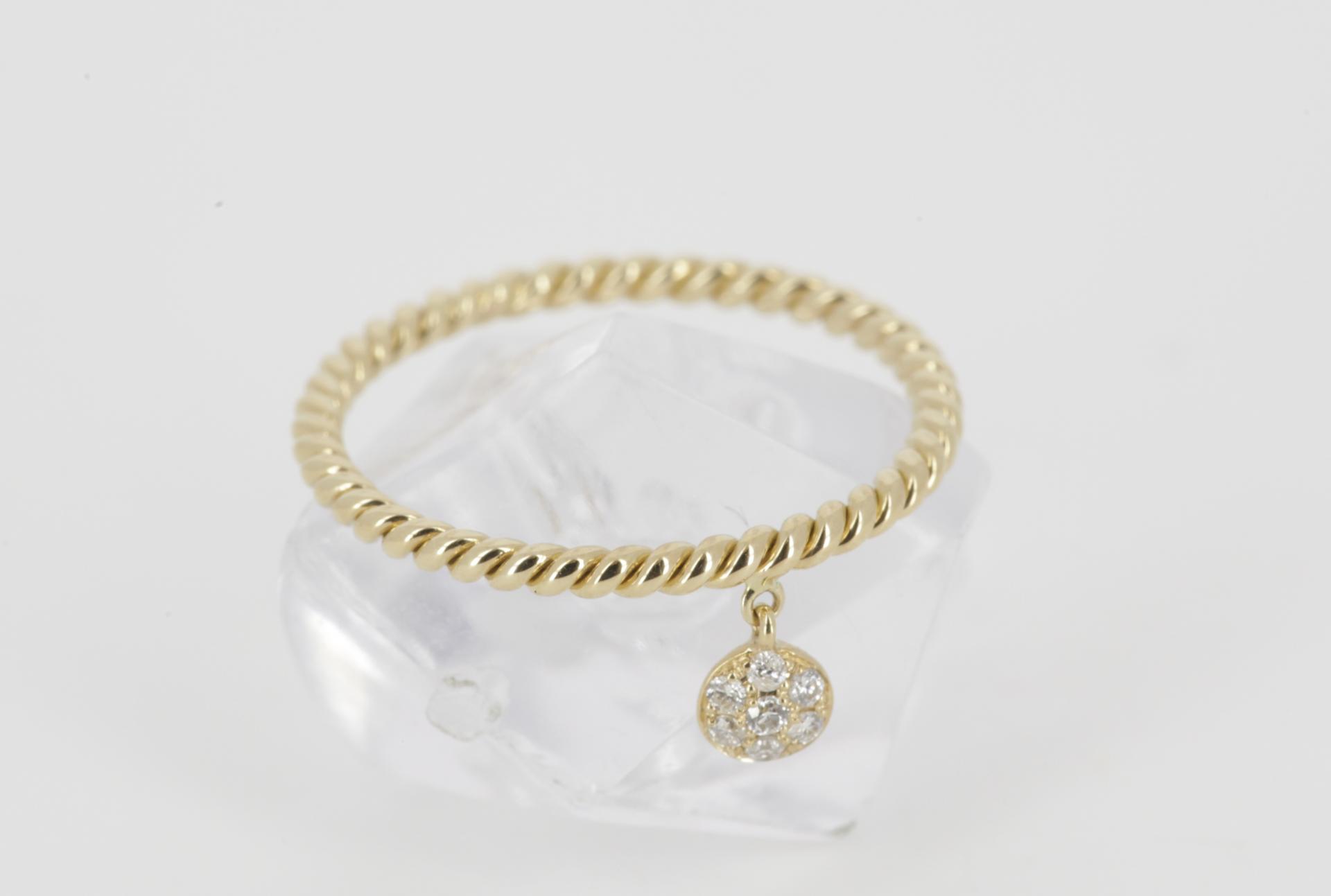 La bague "Very Nice" est faite de sept diamants en serti clos pour 0.06 carats en pendantif sur un anneau en or torsadé. A craquer! Disponible en trois couleurs d'or: jaune, blanc et rose.