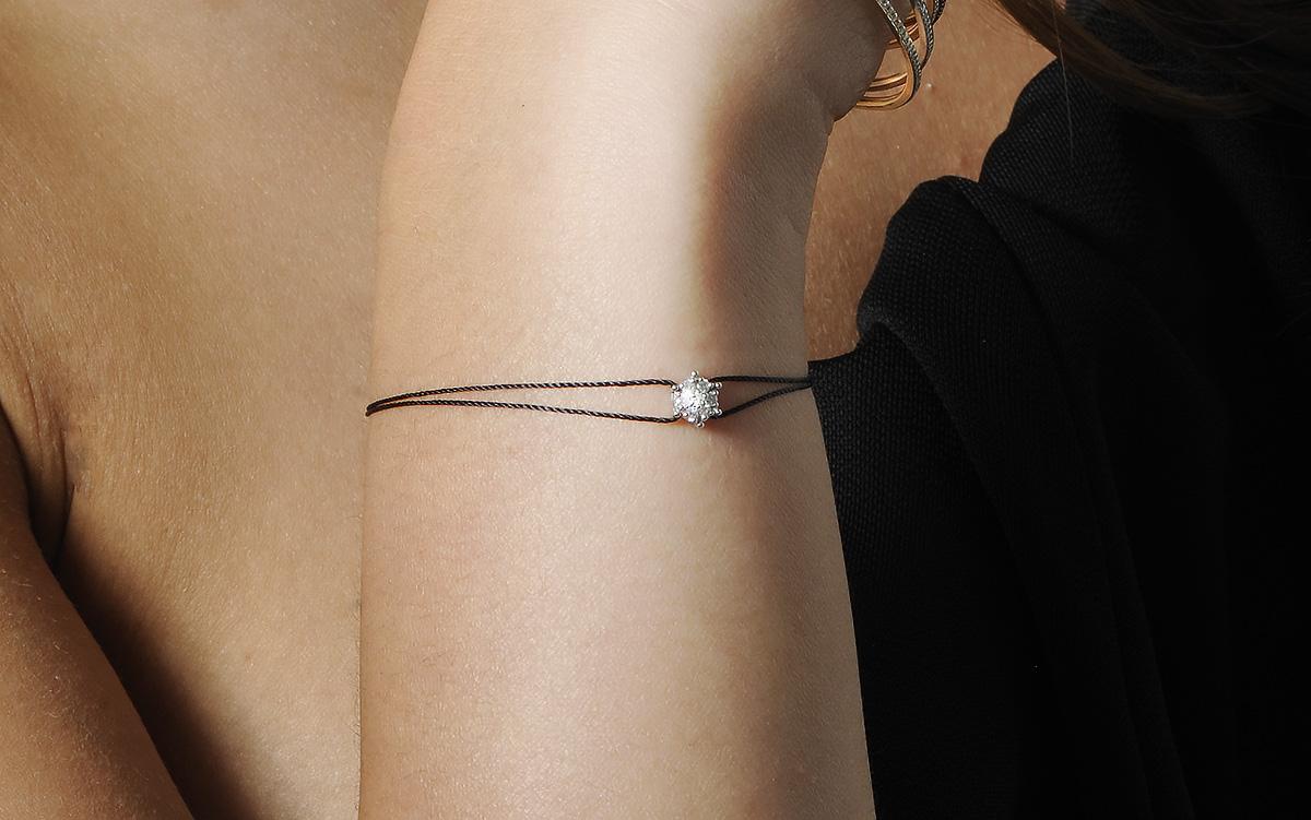 RedLine s'est inspiré des bijoux d'antan pour créer la collection Babette. Sept diamants d'un total de 0,160 carats sont montés sur un serti griffes à l'esthétique raffinée et originale qui donne à la monture une silhouette étoilée. Le fil RedLine apporte délicatesse à ce bracelet resplendissant. Un fermoir en or 18 carats et une échelle de trois anneaux permettront d'ajuster la taille de ce bijou qui est disponible en trois couleurs d'or et 80 couleurs de fils.