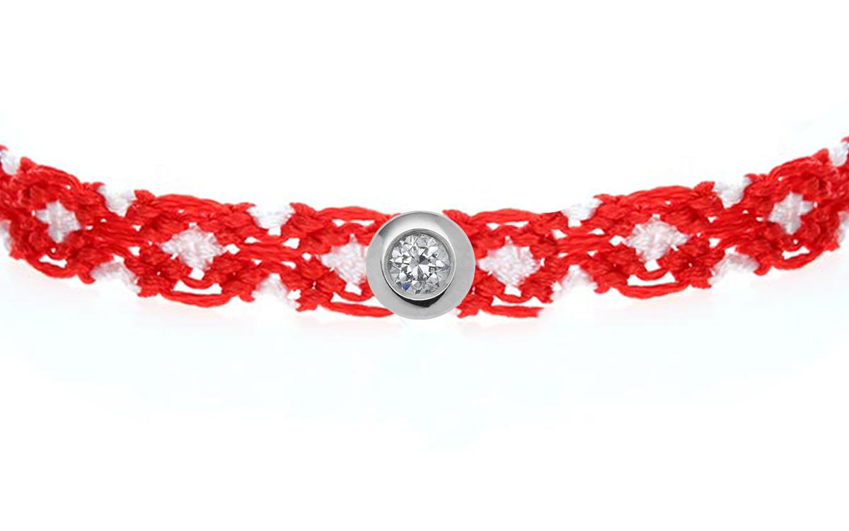 Le bracelet brésilien qui accompagnait vos vacances et vos plus beaux souvenirs s'orne désormais d'un diamant 0,05 carats monté sur un serti clos et d'un fermoir en or 18 carats pour plus de chic et d'éclat mais toujours autant de couleurs et de caractère. Une échelle de trois anneaux permettront d'ajuster la taille du bijou. Il est disponible en or blanc et en or jaune et se décline en neuf combinaisons colorées. (Attention, le motif du tissage fait-maison du bracelet brésilien peut varier pour une même combinaison colorée.)