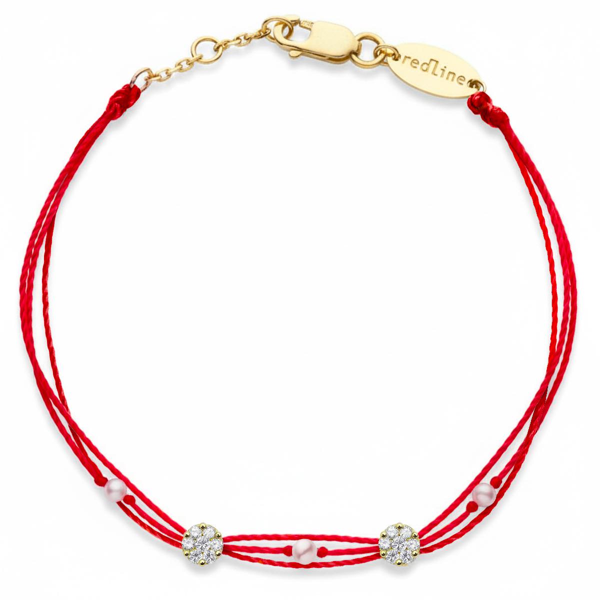 Un diamant sur un fil, ou deux! Deux montures de diamants Illusion (14 diamants formant 0,10 carats sur un serti griffes) sont associées à trois perles de culture pour cette déclinaison du modèle phare de RedLine où douceur et éclats se mélangent sur trois fils de couleurs. Un fermoir en or 18 carats et une échelle de trois anneaux permettront d'ajuster la taille du bijou. Il est disponible en trois couleurs d'or et 80 couleurs de fils.