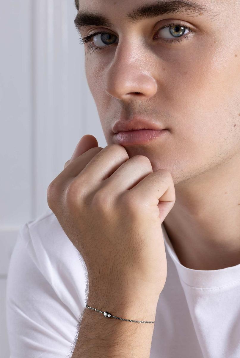 Infinite Bracelet homme chaîne avec diamant 0.15 carat en serti clos en or noir