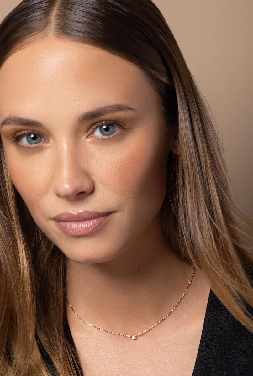 Pure Collier chaîne avec diamant 0.10 carat en serti clos or rose
