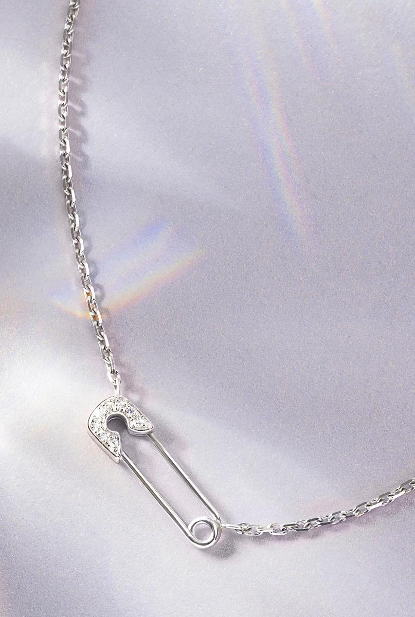 Découvrez notre sublime collier ange Redline. Il est composé d’une somptueuse épingle a nourrice incrustée de diamants délicatement posée sur une fine chaine entre blanc 18 carats. Un bijou étincelant de beauté, à la fois original et élégant. Le must-have de la saison qui viendra compléter idéalement votre boîte à bijoux. Succombez pour un collier intemporel qui vous accompagnera au quotidien. Vous pouvez également le porter avec d’autres pendentifs en diamants pour une tenue plus habillée. Un véritable collier porte-bonheur qui sublimera votre cou. Pour offrir à un être cher ou pour vous faire plaisir, cet élégant joyau en ravira plus d’une. Entrez dans l’univers magique de notre maison de joaillerie française. Le collier ange existe en trois couleurs d’or ; or blanc, or jaune et or rose.