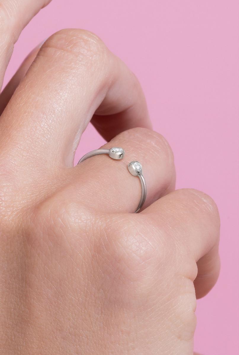 Redline présente une magnifique bague ornée de deux petits diamants sertis-clos « Pure », pour une finesse et une élégance à arborer tous les jours.