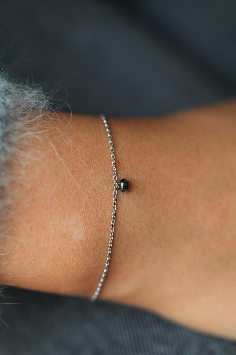 Black Stone Chain Bracelet Black Stone White Gold Chain Bracelet