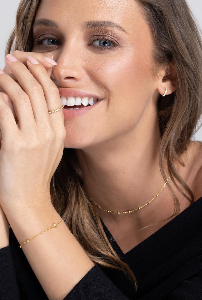 Plusieurs petits diamants sont répartis sur ce bracelet, 0,14 carat de diamants plus précisément, avec un autre plus imposant que les autres en son centre de 0,10 carat. Chaque diamant est monté sur un serti clos en or jaune, qui sont eux-mêmes rattachés à une chaîne en or jaune, qui vient donner de la grâce à votre poignet, et beaucoup de brillance et d’éclat. Il s'adapte au quotidien à tous vos mouvements grâce à sa résistance et au confort de la chaîne.
