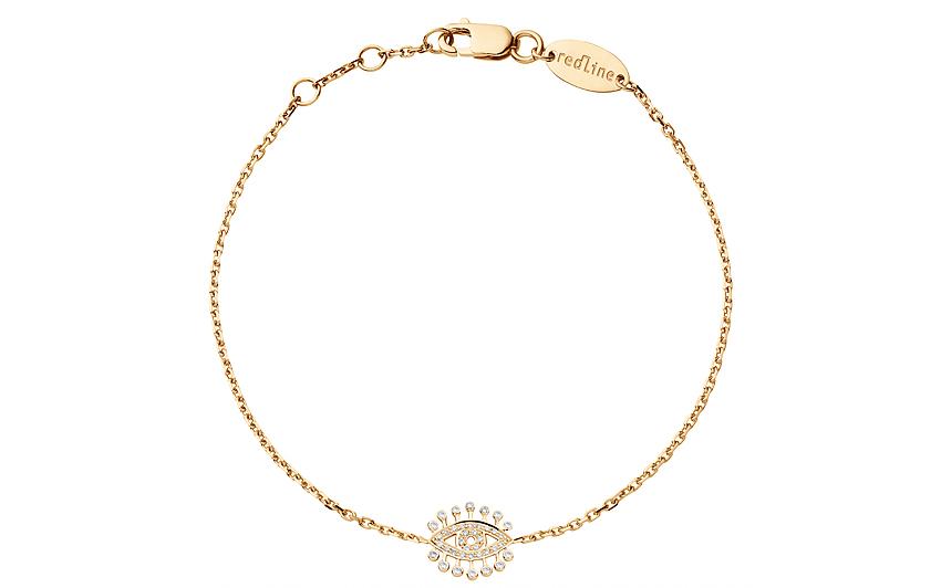 Redline vous présente son nouveau bracelet Super Power! Un œil protecteur pavé de diamants posé sur une chaine en or 18 carats. Un fermoir et une échelle en or de 3 anneaux viendront finir ce bijou précieux. Un bracelet à la symbolique forte pour vous porter bonheur tout au long de votre vie.