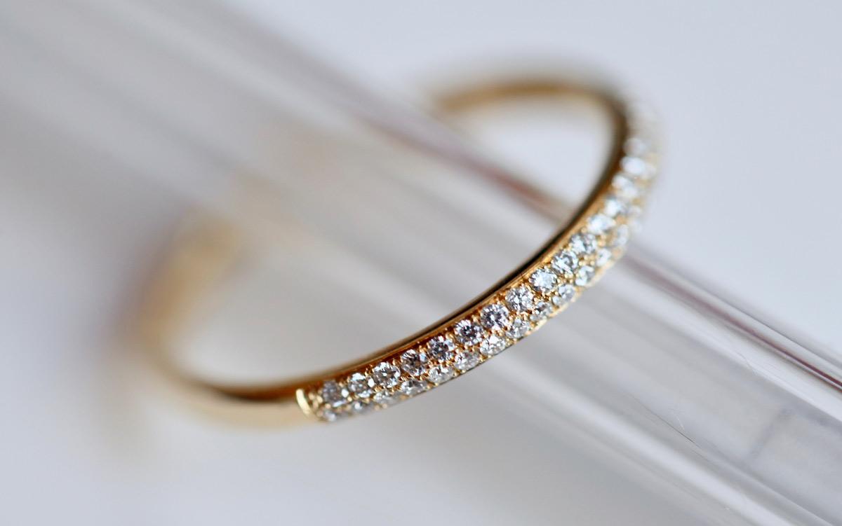 Bague Amour, un anneau élegant en or à moitié pavé par des diamants (0.21 carats). En or jaune, blanc et rose, selon votre choix.